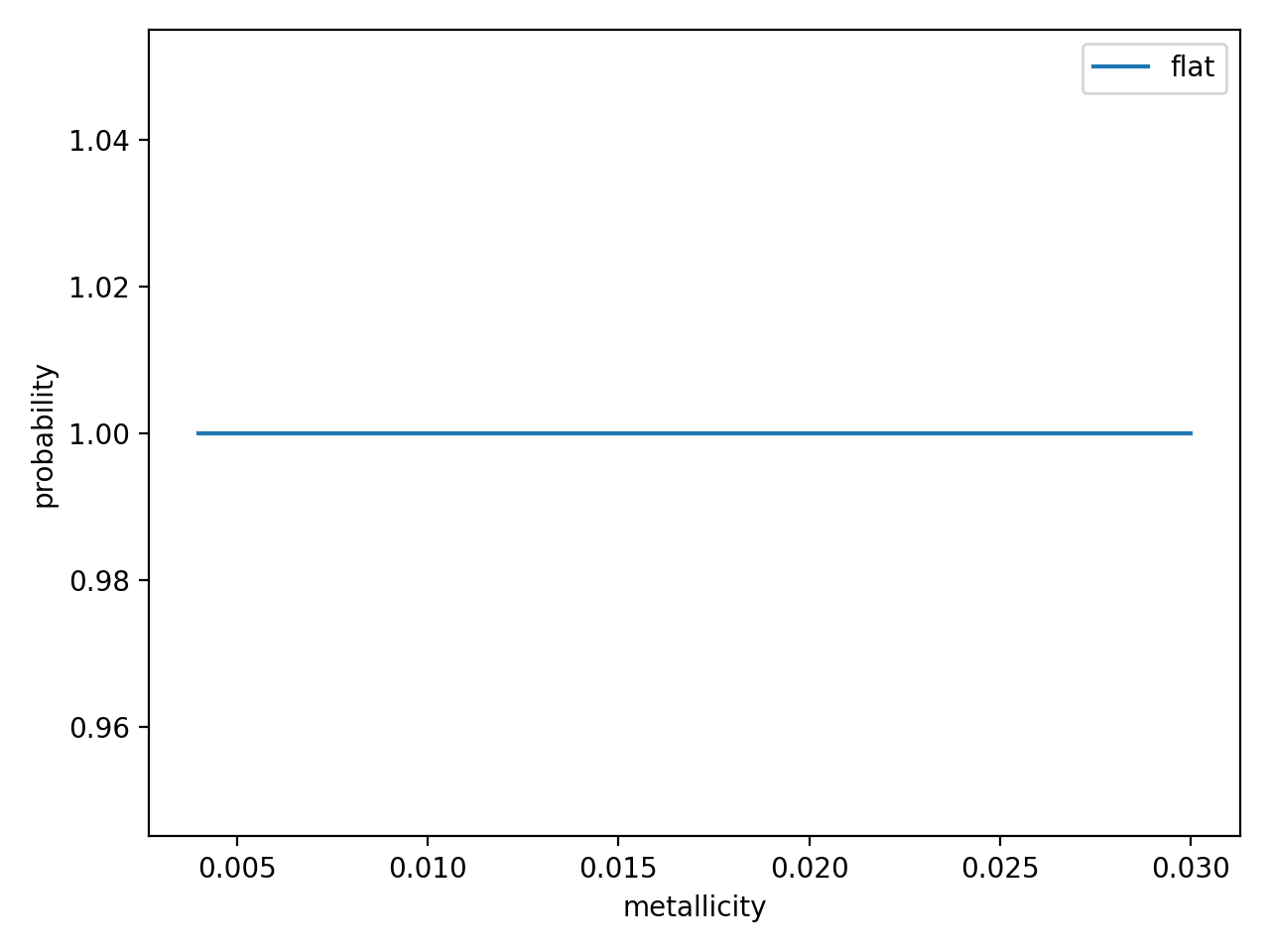 Plot showing examples of the possible metallicity prior models with the parameters given above.