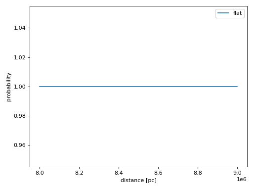 Plot showing examples of the possible distance prior models with the parameters given above.