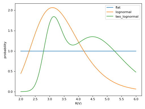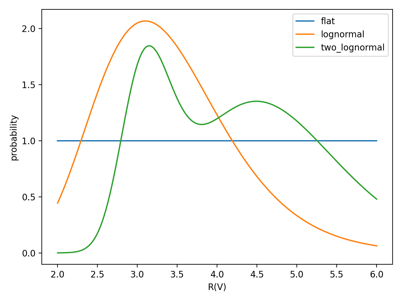 2. Lognormal with the maximum at the R(V) given by max_pos and the width given by sigma.